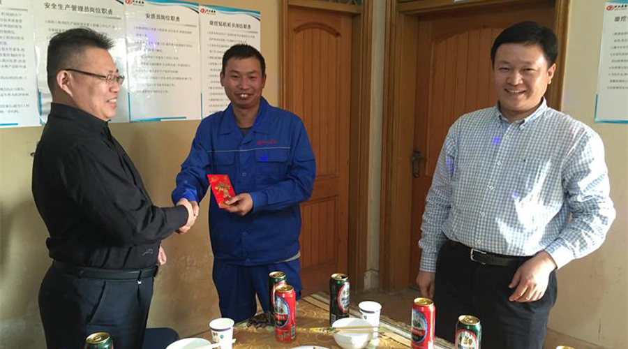 李總一行先后來到各個項目部,并與項目部全體員工一起聯歡座談。李總非常關心員工的生活情況,親切詢問大家過年期間的吃、穿、住、行等生活細節,對過年期間項目部舉辦的各項活動表示稱贊。為表示慰問,李總還代表總公司給各個項目分別頒發了紅包,祝福每一名員工在新的一年身體健康,闔家歡樂,日子過得紅紅火火。