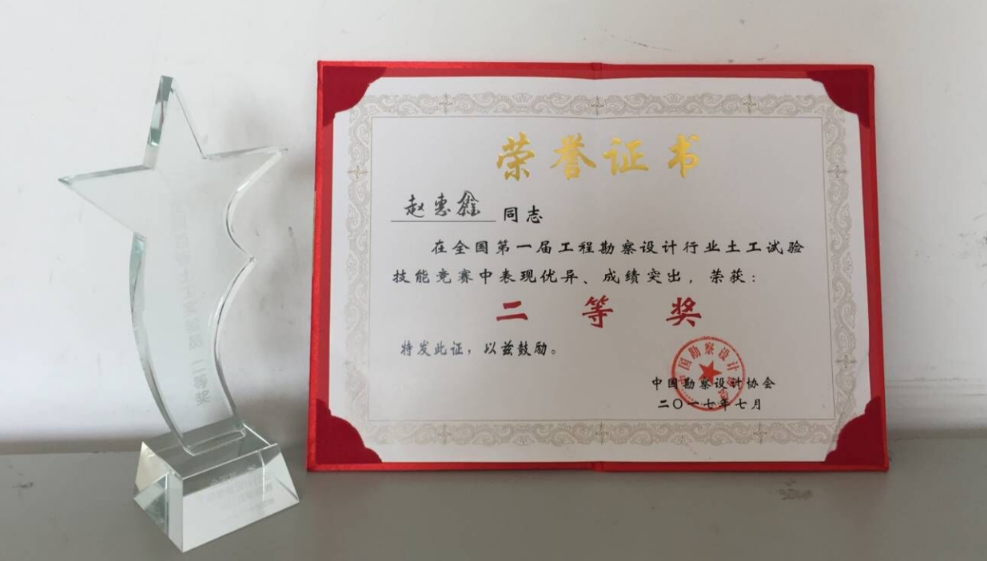 我公司趙惠鑫同志獲全國工程勘察設計行業土工試驗技能競賽個人二等獎