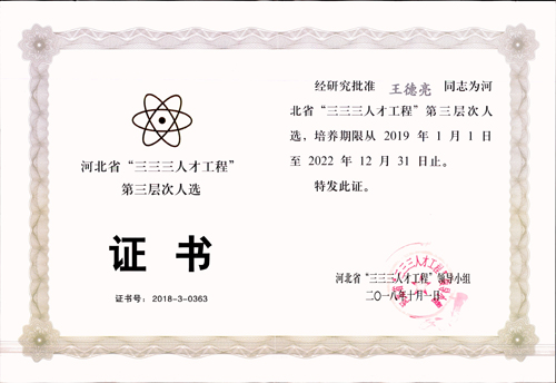經(jīng)公司推薦,石家莊市人力資源和社會保障局組織評審,報河北省“三三三人才工程”領(lǐng)導(dǎo)小組批準、地下工程公司王德亮榮獲河北省“三三三人才工程”第三層次人選。