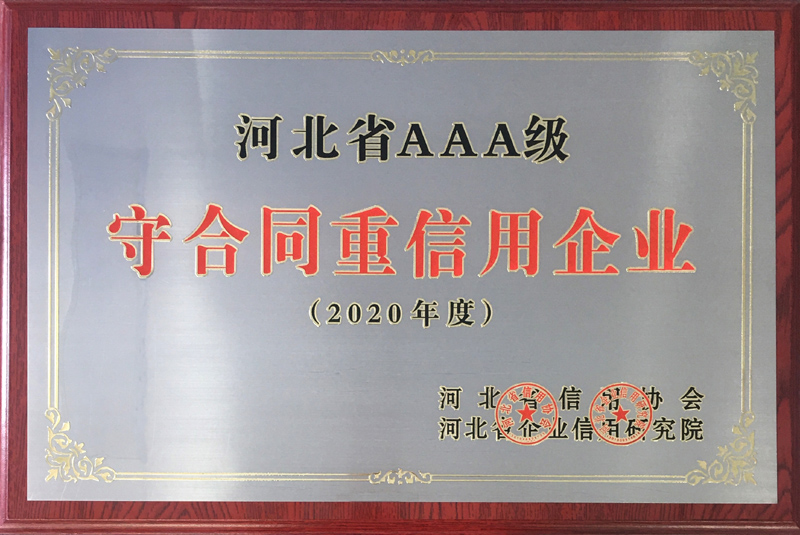我公司獲得“2020年度河北省AAA級守合同重信用企業”榮譽