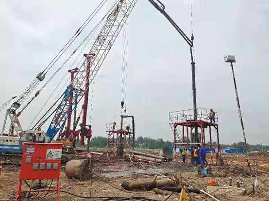 本工程于2021年5月7日開工,歷時72天,兩臺儲罐于7月13日全部完工。共完成鋼筋混凝土灌注樁600根(包含能源樁240根),廠區內臨時道路約12000m2,能源樁水平管施工等工作量。