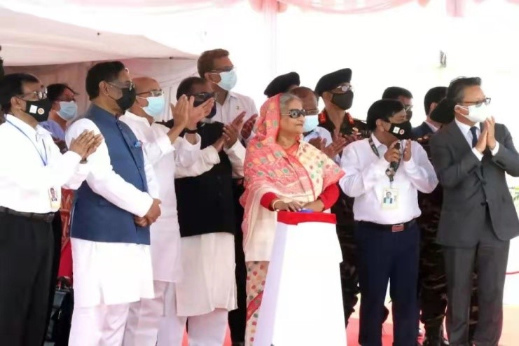 當(dāng)?shù)貢r間2022年3月21日,由中冀建勘集團(tuán)有限公司參建的孟加拉帕亞拉2×660MW燃煤電站項(xiàng)目(一期)在孟加拉國總理哈西娜、中國駐孟加拉大使李極明和參贊劉振華一行見證下舉行了落成典禮大會,孟加拉國總理哈西娜為項(xiàng)目揭牌。