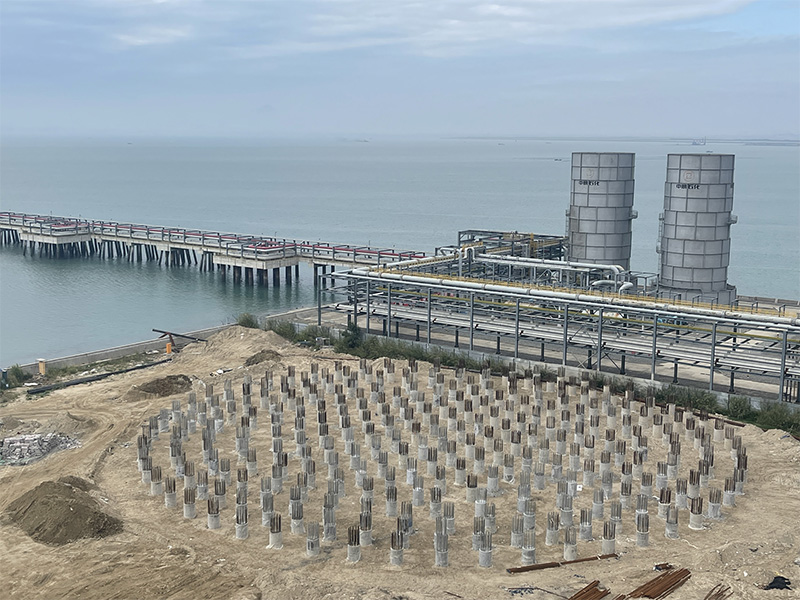 本項(xiàng)目位于福建省福清市,由福建中民新能源有限公司投資建設(shè)。我公司承擔(dān)本項(xiàng)目兩個(gè)10萬m³預(yù)應(yīng)力低溫混凝土丙烷儲(chǔ)罐的樁基施工。采用地下樁與地上短柱一次施工成型工藝,每個(gè)儲(chǔ)罐有旋挖鉆孔灌注樁 292 根,樁型為 C40φ1.2m 旋挖鉆孔灌注樁(后壓漿法),單樁豎向抗壓極限承載力為 15000KN,入土樁長47m。