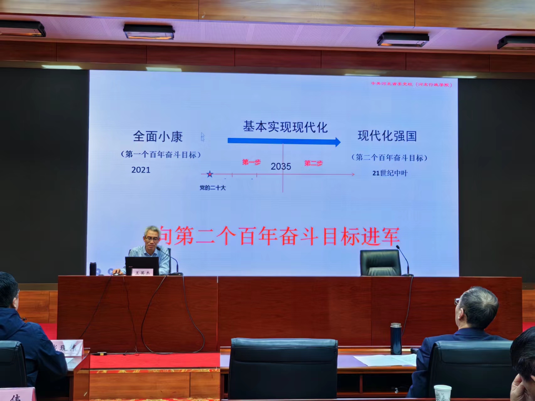 省委黨校王英杰教授講授的《全面建設社會主義現代化國家的政治宣言和行動綱領—深入學習貫徹黨的二十大精神》,深刻闡述了黨的二十大在黨的歷史上的重要地位,以及新時代十年在中華民族發展史上所具有的里程碑意義,充分分析了當前國際國內發展形式、如何準確把握習近平新時代中國特色社會主義世界觀和方法論,重點講述了新征程上黨的偉大的自我革命的必要性。