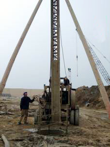 針對上述要求,工程現(xiàn)場采取以下針對措施:①由于花崗巖強度較高,沖擊鉆成孔速度慢,可能對成樁質(zhì)量產(chǎn)生影響。因此結(jié)合以往工程經(jīng)驗,根據(jù)本工程地層特點,制定了比較切合實際的施工操作參數(shù),提高了成孔施工速度,確保單樁成樁總體時間符合設(shè)計要求。②現(xiàn)場加工了兩套清孔裝置,有效地提高清孔速度和質(zhì)量,保證了沉渣厚度滿足設(shè)計要求的不大于5cm。③在沖擊鉆頭焊上取樣器,解決了地層鑒定需要樣品的問題。